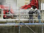 - Manœuvre de remise en position de travail de la foreuse sur la coursive extérieure du Palais de Justice de Montpellier, le lundi 4 janvier 2016. Copyright : Anje34