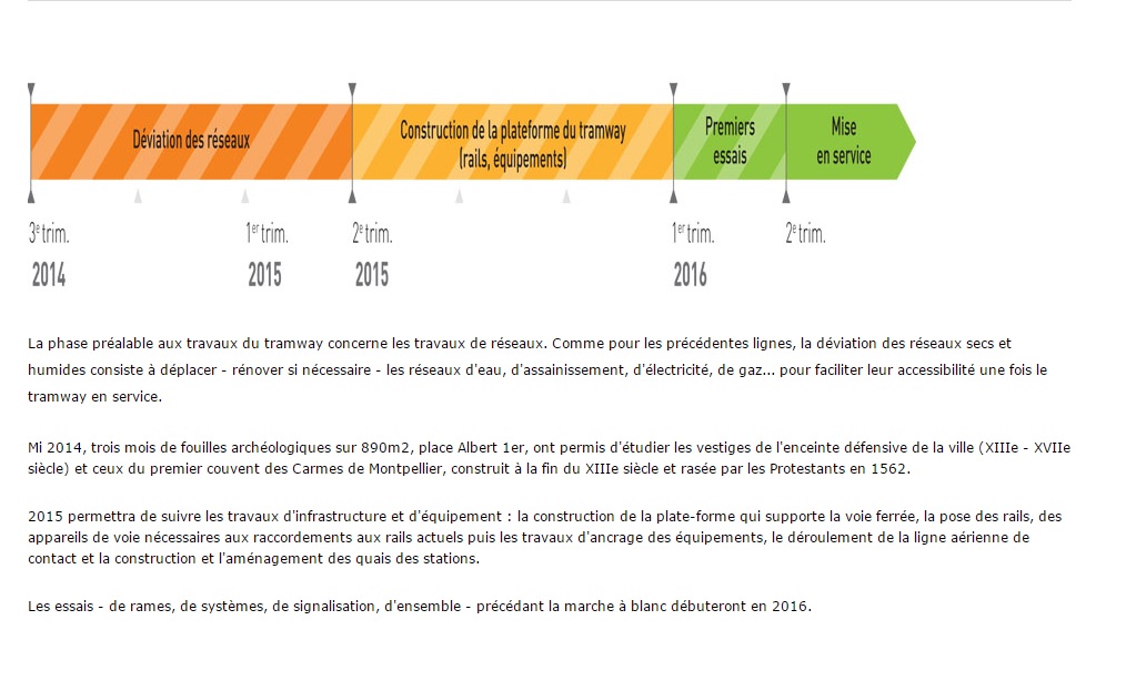 Calendrier du chantier de bouclage de la ligne 4 de tramway disponible sur le site TaM Voyages, le dimanche 10 janvier 2016. Document : TaM Montpellier 3M