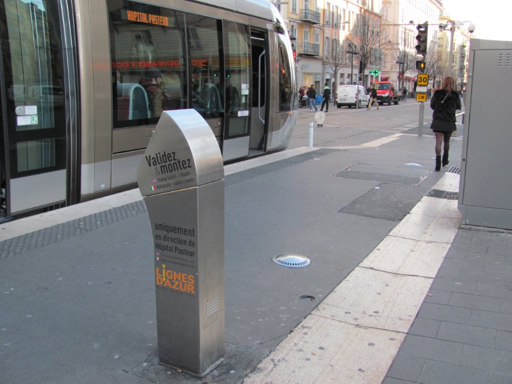 Photographie d’un des valideurs extérieurs installés sur les quais de la station « Gare Thiers » prise à Nice, le jeudi 7 janvier 2016. Copyright : Edouard Paris