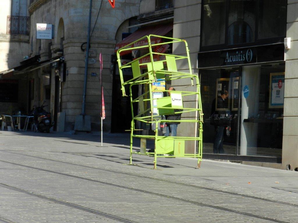 L’art moderne s’expose dans le haut du boulevard du Jeu-de-Paume à Montpellier, à la hauteur du totem de l’arrêt de bus des lignes 6 et 7. Photo prise le samedi 30 janvier 2016. Copyright : Anje34