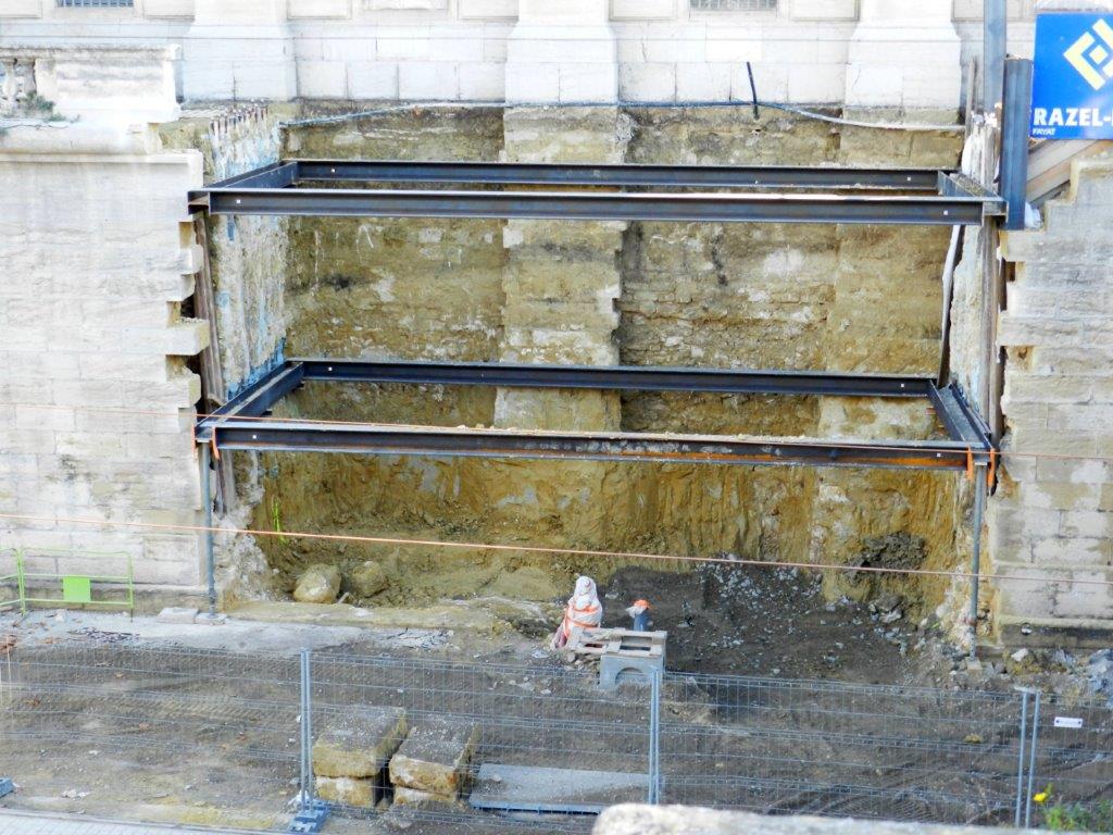 Vue, depuis le haut de la rue de La Blottière à Montpellier, sur l’espace où seront installés deux ascenseurs de desserte de la future station « Peyrou – Arc de Triomphe », le samedi 30 janvier 2016. Copyright : Anje34