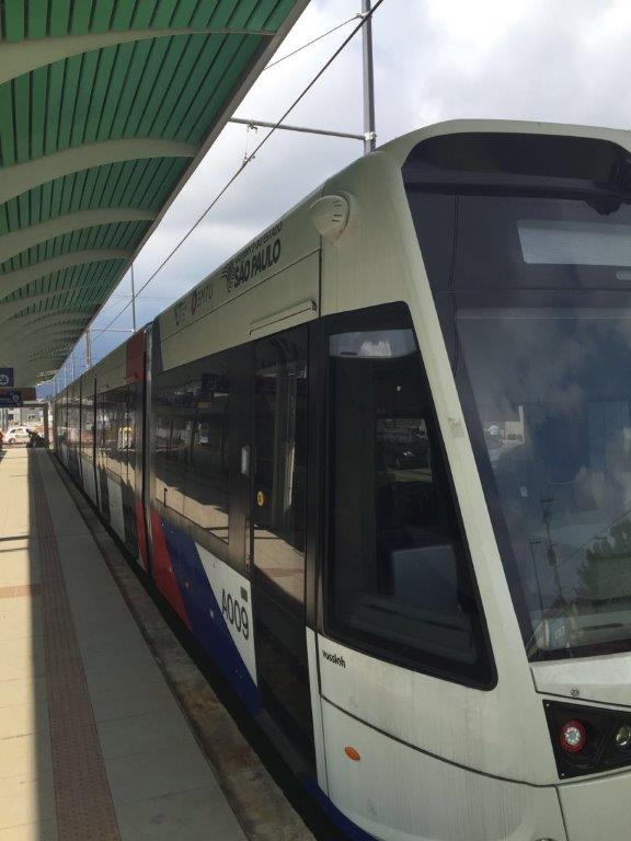Rame 009 Tramlink Vossloh assemblée au Brésil, photographiée au terminus « Porto » pas encore en service, le dimanche 31 janvier 2016. Copyright : W. Dos Santos