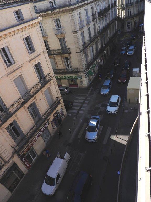 Vue sur la rue Anatole-France à Montpellier depuis le parking Laissac, le vendredi 19 février 2016, à la veille de la fermeture définitive de ce parc de stationnement. Copyright : Anje34