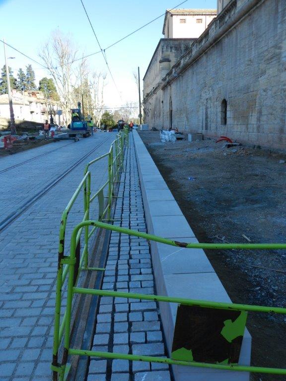 Photographie d’un des deux quais en construction de la future station « Peyrou – Arc de Triomphe », le mardi 16 février 2016. Copyright : Anje34