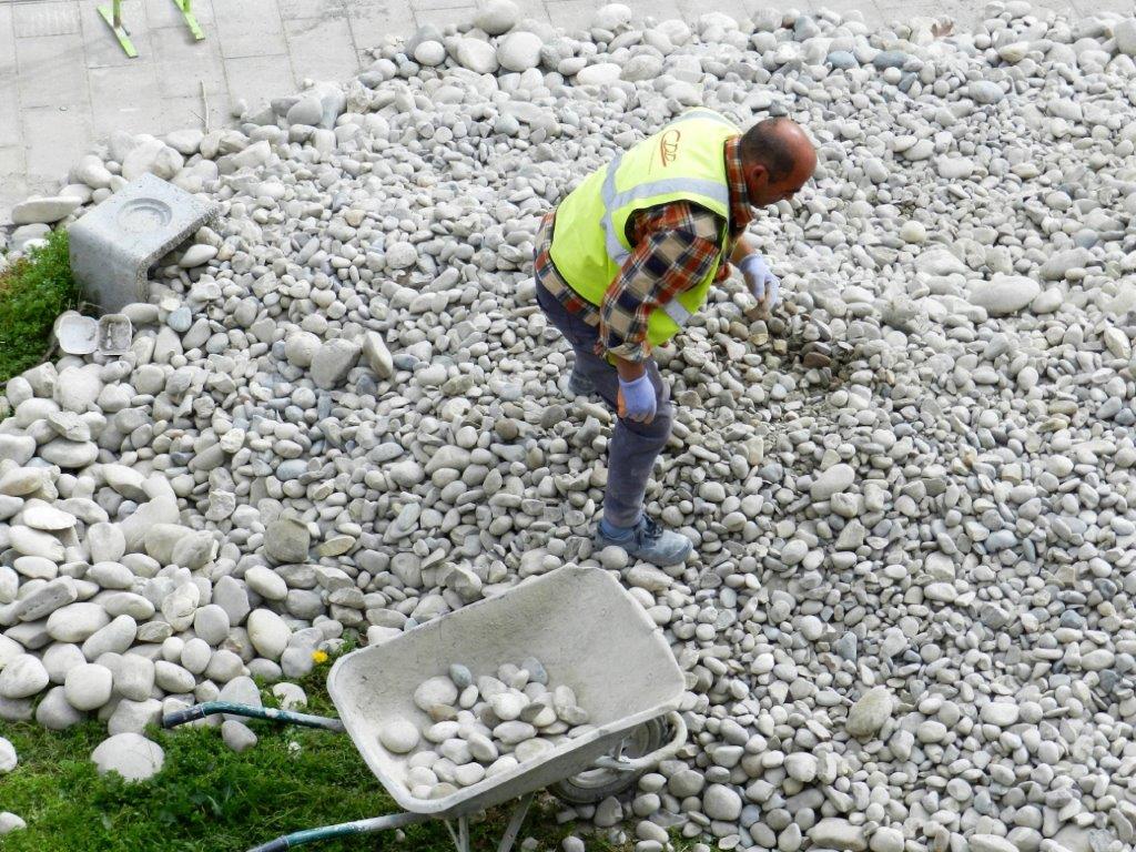 Sélection des galets à poser devant la vieille fontaine du boulevard du Professeur Louis-Vialleton, côté sud, le jeudi 3 mars 2016. Copyright : Anje34