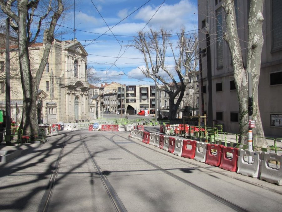 Vue sur la place Albert 1er depuis le bas du boulevard Henri IV à Montpellier, le samedi 5 mars 2016. Copyright : Edouard Paris