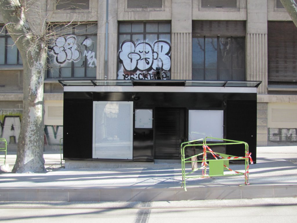 Mobilier de station sur le quai de la future station « Albert 1er – Cathédrale » au pied de l’Institut de Biologie de la Faculté de Médecine. Photo prise le samedi 5 mars 2016. Copyright : Edouard Paris