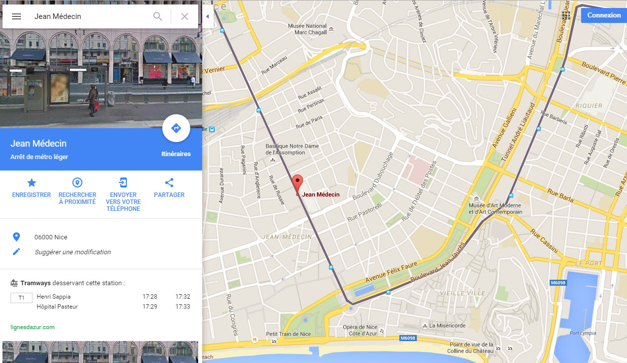 Nice a mis ses données transport à la disposition de Google Maps Transit. Capture d’écran en date du vendredi 11 mars 2016. Document : Google Maps