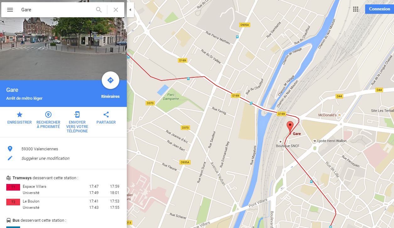 Valenciennes a mis ses données transport à la disposition de Google Maps Transit. Capture d’écran en date du vendredi 11 mars 2016. Document : Google Maps