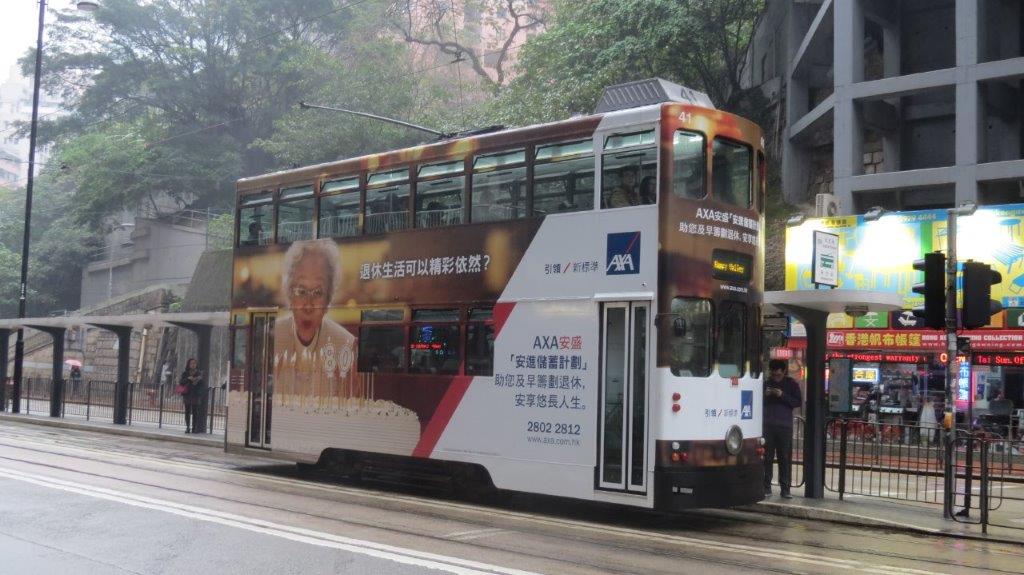 A Hong Kong, livrée AXA pour la motrice 41, le dimanche 13 mars 2016. Copyright : DS7