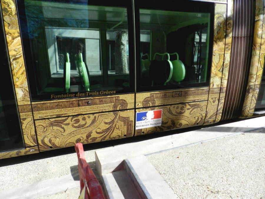 Les logos de la région et du département ont disparu sur la rame 2041 Citadis 302 Alstom. Photo prise le mardi 22 mars 2016 après-midi. Copyright : Anje34
