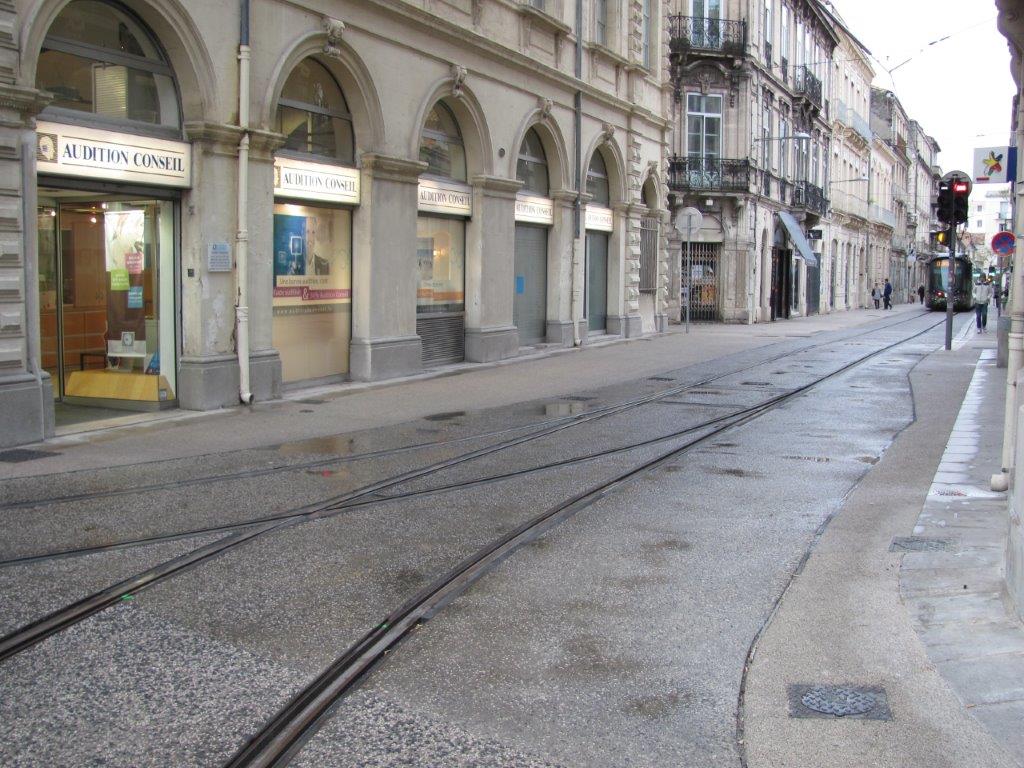 Aiguillage talonnable de la rue André-Michel, où seules les rames de la ligne 3 circuleront en direction du cours Gambetta, après la mise en service de la ligne 4 bouclée. Exceptionnellement les rames de la ligne 4 pourraient emprunter cette rue si une modification d’itinéraire devait se présenter. Photo prise le vendredi 1er avril 2016. Copyright : Edouard Paris