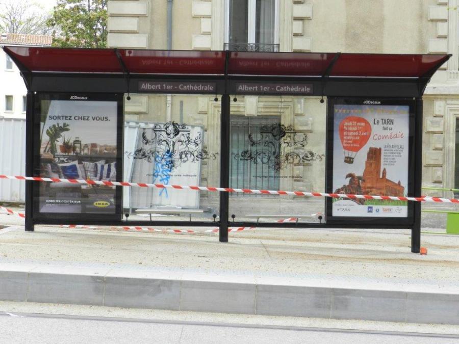 Boulevard Henri IV à Montpellier, autre abri de station du quai 4b de la future station « Albert 1er – Cathédrale », photographié le mercredi 30 mars 2016. Copyright : Anje34