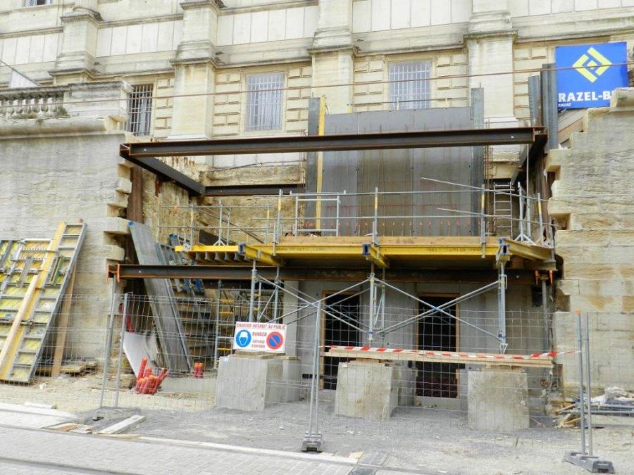 Chantier de la fosse aux ascenseurs de la future station « Peyrou – Arc de Triomphe », le mardi 12 avril 2016. Copyright : Anje34