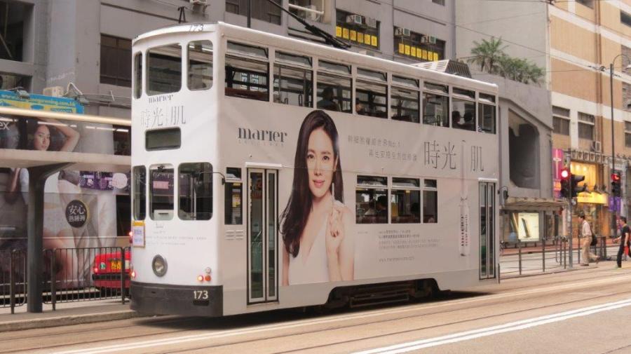 A Hong Kong, livrée Marier pour la motrice 173, le lundi 2 mai 2016. Copyright : DS7