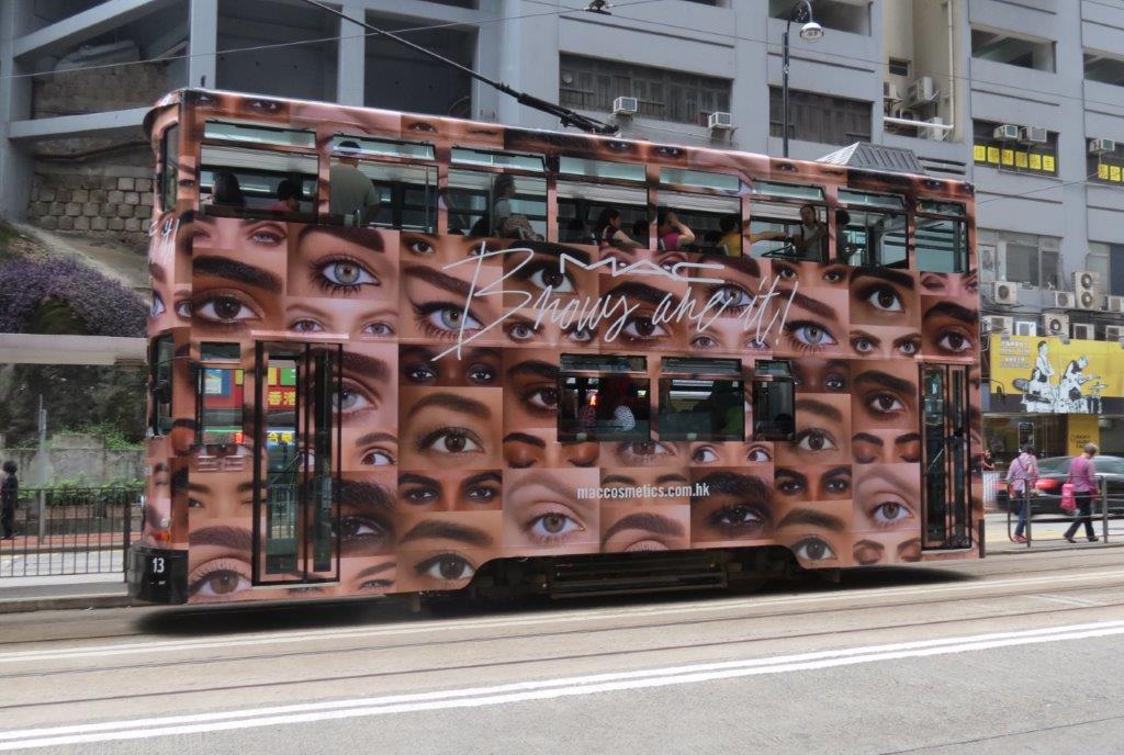 A Hong Kong, livrée MAC cosmetics pour la motrice 13, le lundi 2 mai 2016. Copyright : DS7