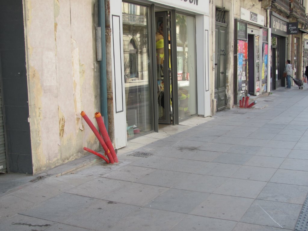 Sur le quai 4a de la future station « Saint-Guilhem – Courreau », boulevard du Jeu-de-Paume à Montpellier, on ne connaît pas encore la nature des équipements qui seront installés au niveau des gaines photographiées le samedi 7 mai 2016. Copyright : Edouard Paris