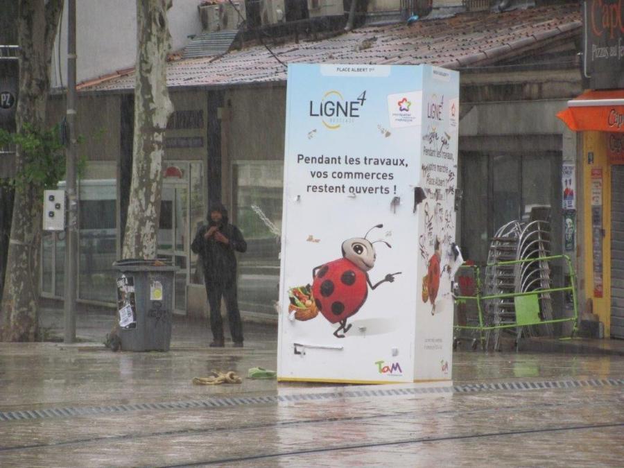 A la veille de l’inauguration de la place Albert 1er à Montpellier, dans sa nouvelle configuration, Adèle la coccinelle est sur le point de tirer sa révérence. Photo prise le mardi 10 mai 2016. Copyright : Edouard Paris