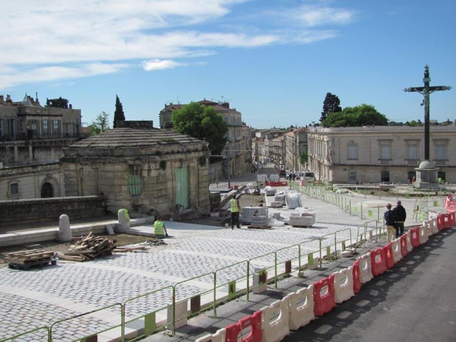 Chantier d’embellissement de la rue François-Franque et de la place Giral à Montpellier, le jeudi 12 mai 2016. Copyright : Edouard Paris