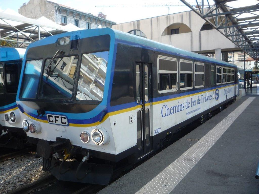 L’autorail X 307 CFD Montmirail des Chemins de Fer de Provence, loué auprès des Chemins de Fer de la Corse (CFC), est photographié en gare de Nice CP, le lundi 16 mai 2016. Copyright : Michel Bozzola