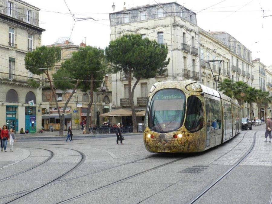 La rame 2032 Citadis 302 Alstom est photographiée au moment où elle traverse la place Edouard-Adam, dans le sens 4b, le samedi 28 mai 2016. Copyright : Anje34