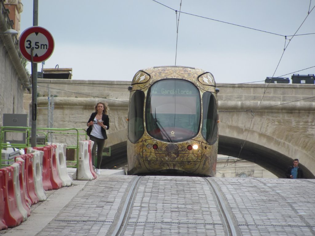 La rame 2031 Citadis 302 Alstom est photographiée à la hauteur de la future station « Peyrou – Arc de Triomphe », quai 4a, le samedi 28 mai 2016. Copyright : Edouard Paris