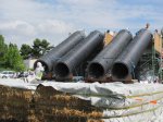 - Afin d’éviter les brûlures, la surface de la bâche arrosée du toboggan a été réduite de moitié par rapport à l’édition 2015 de la ruée des fadas à Lattes. Photo prise le samedi 4 juin 2016. Copyright : Edouard Paris