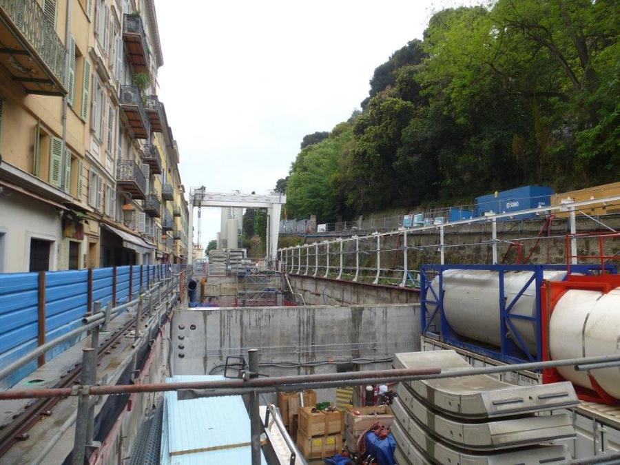 Rue Catherine-Ségurane à Nice, où se trouve le puits de descente du tunnelier. Photo prise le samedi 14 mai 2016. Copyright : Michel Bozzola