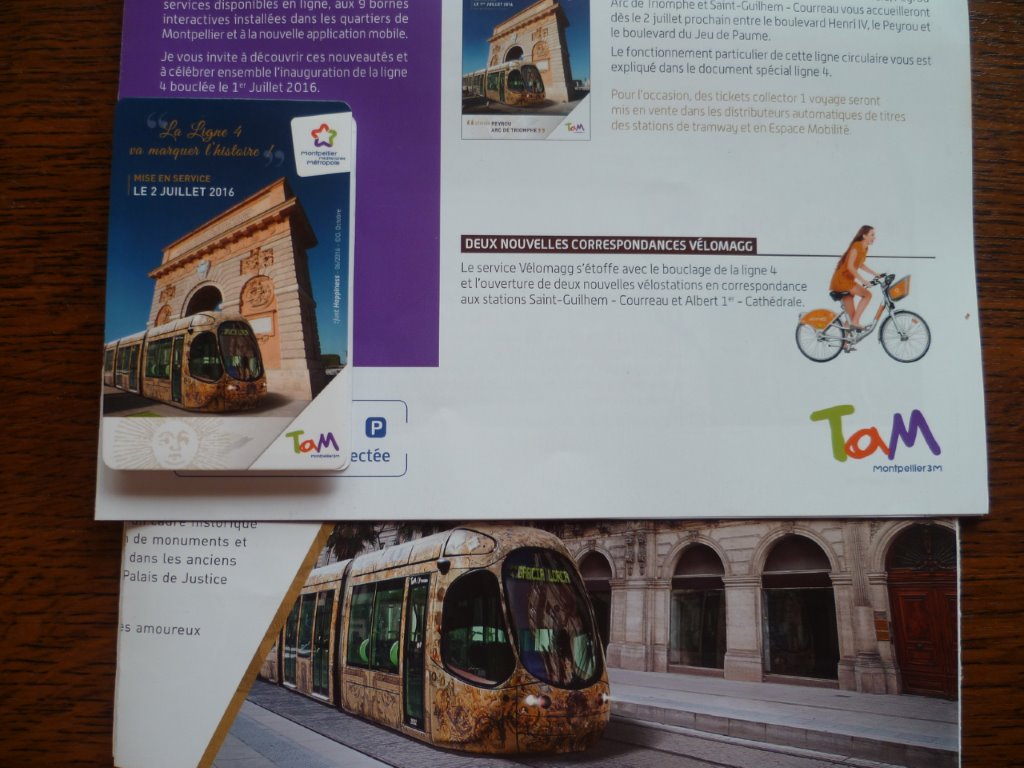 Aperçu des documents distribués dans les boites aux lettres de la métropole montpelliéraine sur lesquels la rame 2032 Citadis 302 Alstom est présentée telle qu’elle est dans la réalité, c’est à dire sans aucun logo « République Française ». Photo prise le samedi 11 Juin 2016. Copyright : Edouard Paris
