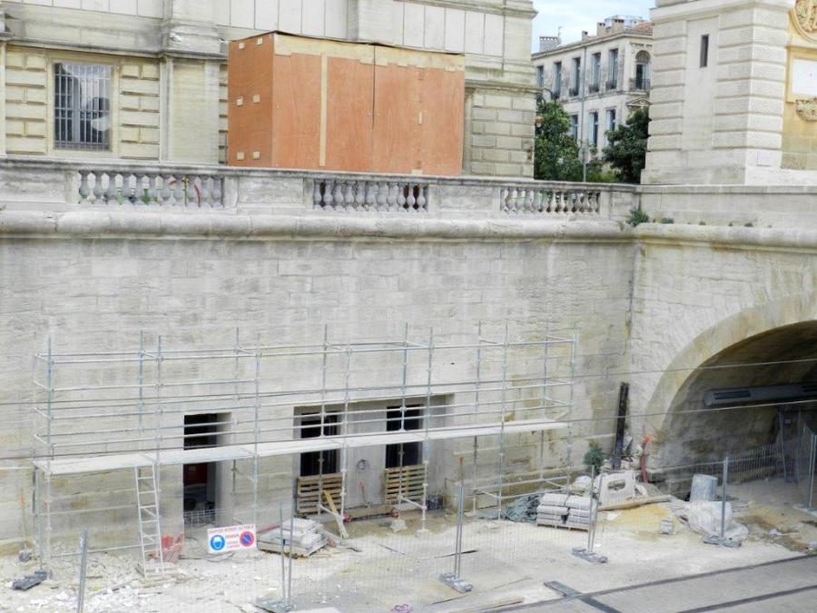 Les deux ascenseurs de huit places chacun assureront le lien entre le boulevard du Professeur Louis-Vialleton et la coursive extérieure du Palais de Justice de Montpellier donnant sur la rue Foch. Photo prise le vendredi 10 juin 2016. Copyright : Anje34