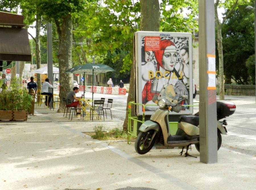JCDecaux Montpellier veut à tout prix placer sa sucette double face dans le haut du boulevard Henri IV, à un endroit dépendant en principe du périmètre du site classé du Jardin des Plantes. Photo prise le vendredi 10 juin 2016. Copyright : Anje34