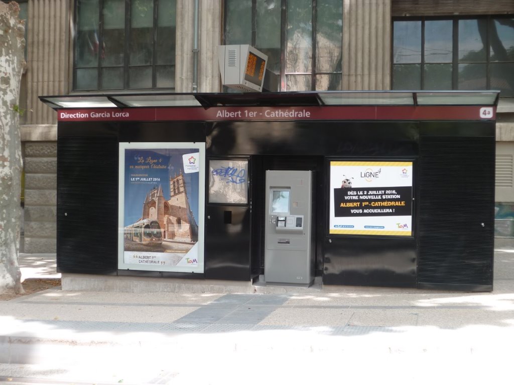 Aperçu du distributeur automatique de titres de transport de la future station « Albert 1er – Cathédrale » quai 4b, le samedi 11 juin 2016. Copyright : Edouard Paris