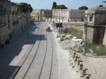 - Les voyageurs du quai 4a de la future station « Peyrou – Arc de Triomphe » disposeront d’un auvent pour s’abriter des intempéries. Photo prise le vendredi 24 juin 2016. Copyright : Anje34