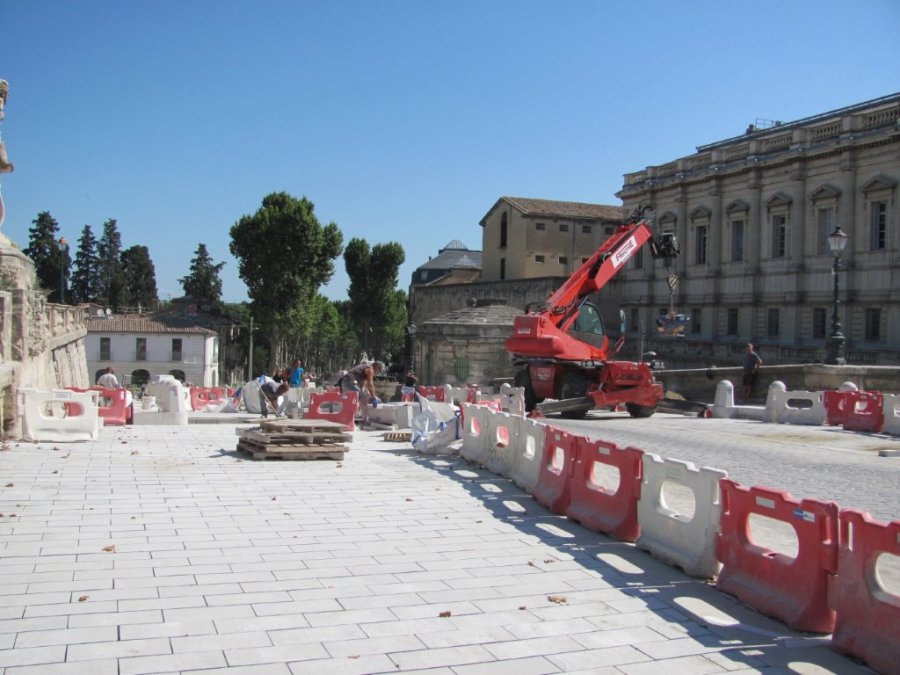 L’équipe de dalleurs portugais en pleine action rue de La Blottière à Montpellier, le samedi 25 juin 2016. Copyright : Edouard Paris