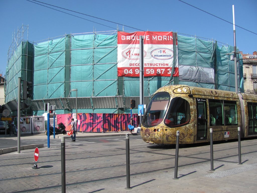 A l’arrière de la station « Observatoire », commune aux lignes 3 et 4 de tramway, la démolition des halles et parking Laissac se poursuit. Photo prise le samedi 25 juin 2016. Copyright : Edouard Paris