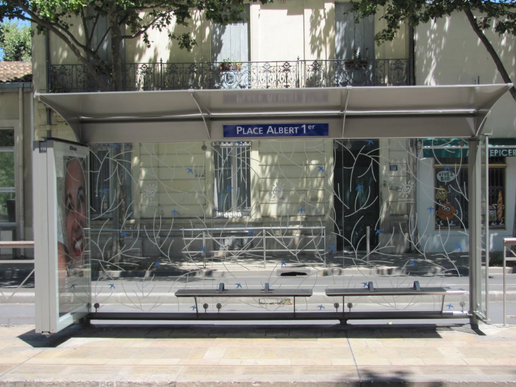 Si la station de la ligne 1 « Place Albert 1er » vient de prendre le nom de « Place Albert 1er – Saint-Charles », la signalétique sous les abris n’a pas bougé. Photo prise le dimanche 3 juillet 2016. Copyright : Edouard Paris