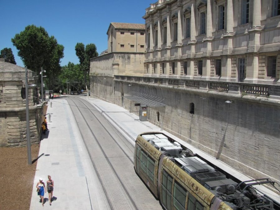 Pas l’ombre d’un voyageur sur le quai 4a de la station « Peyrou – Arc de Triomphe » à l’arrivée d’une rame, le dimanche après-midi 3 juillet 2016. Copyright : Edouard Paris