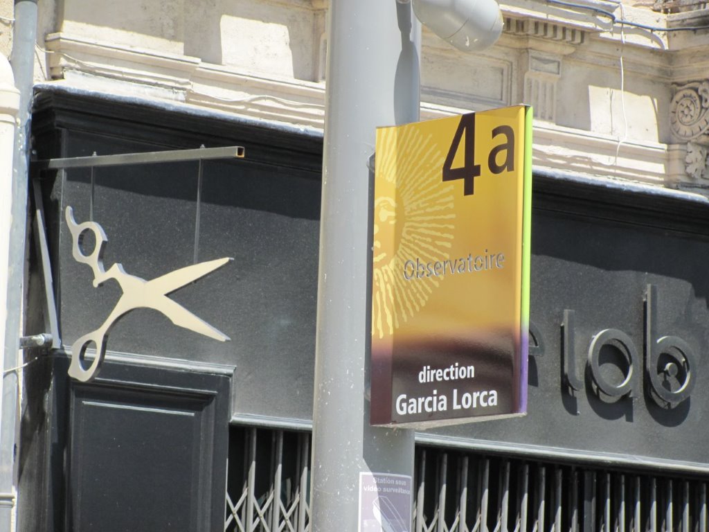 Signalétique de la ligne 4 quai 4a de la station « Observatoire » commune avec la ligne 3. Photo prise le dimanche 3 juillet 2016. Copyright : Edouard Paris