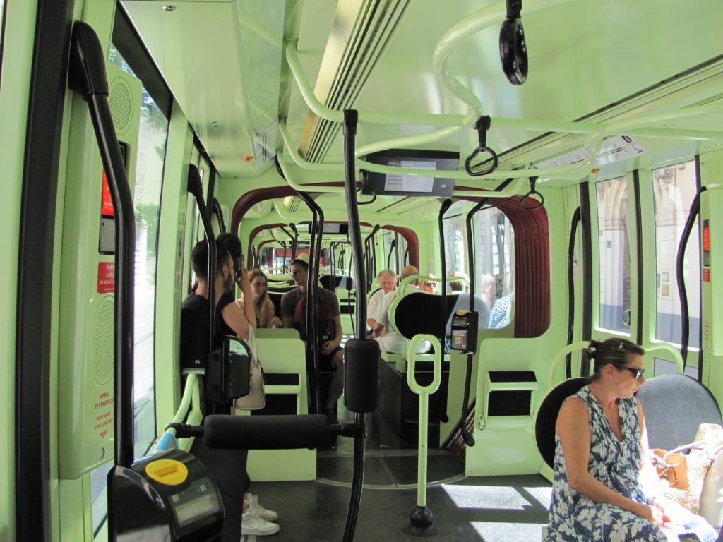 A bord de la rame 2045 Citadis 302 Alstom en direction de « Garcia Lorca » entre « Observatoire » et « Gare Saint-Roch », le dimanche après-midi 3 juillet 2016. Copyright : Edouard Paris