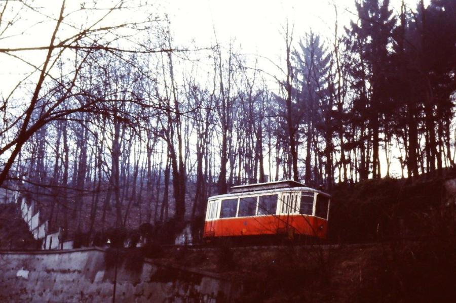 La motrice D.1 de la ligne de tramway à crémaillère Sassi – Superga est photographiée le mercredi 12 mars 1980. Copyright : Michel Bozzola