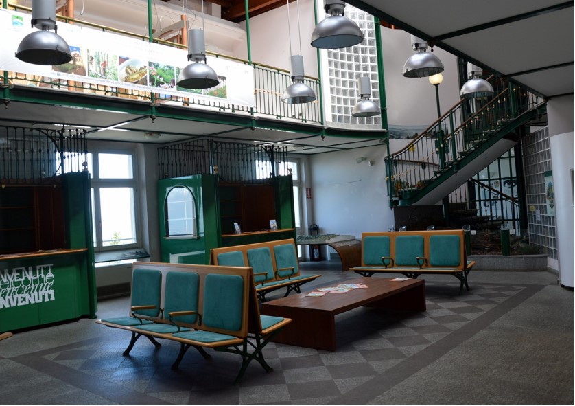 La salle des pas perdus du terminus « Superga » de la ligne de tramway à crémaillère Sassi – Superga, photographiée le vendredi 17 juin 2016. Copyright : FraPom