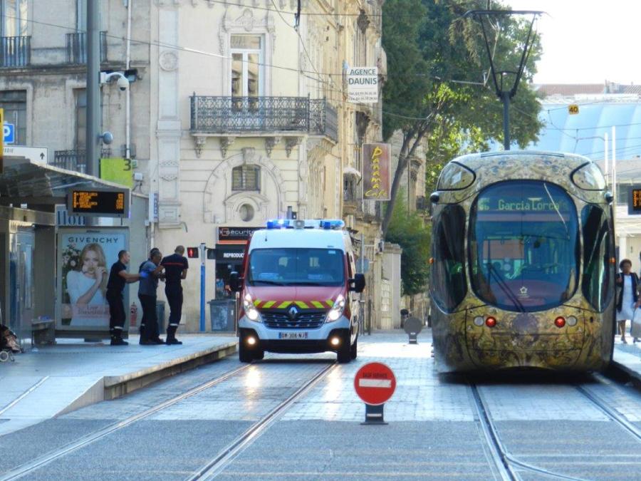 Station « Observatoire », commune aux lignes 3 et 4 de tramway, sur le boulevard éponyme, le dimanche 10 juillet 2016 en début de matinée. Copyright : Anje34