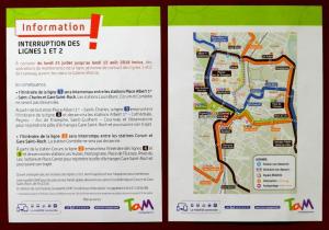 - Les mêmes infos et carte, immortalisées sur la photo précédente, affichées à la station « Comédie », qui sera fermée du lundi 25 juillet au lundi 15 août 2016. Photo prise le samedi 23 juillet 2016