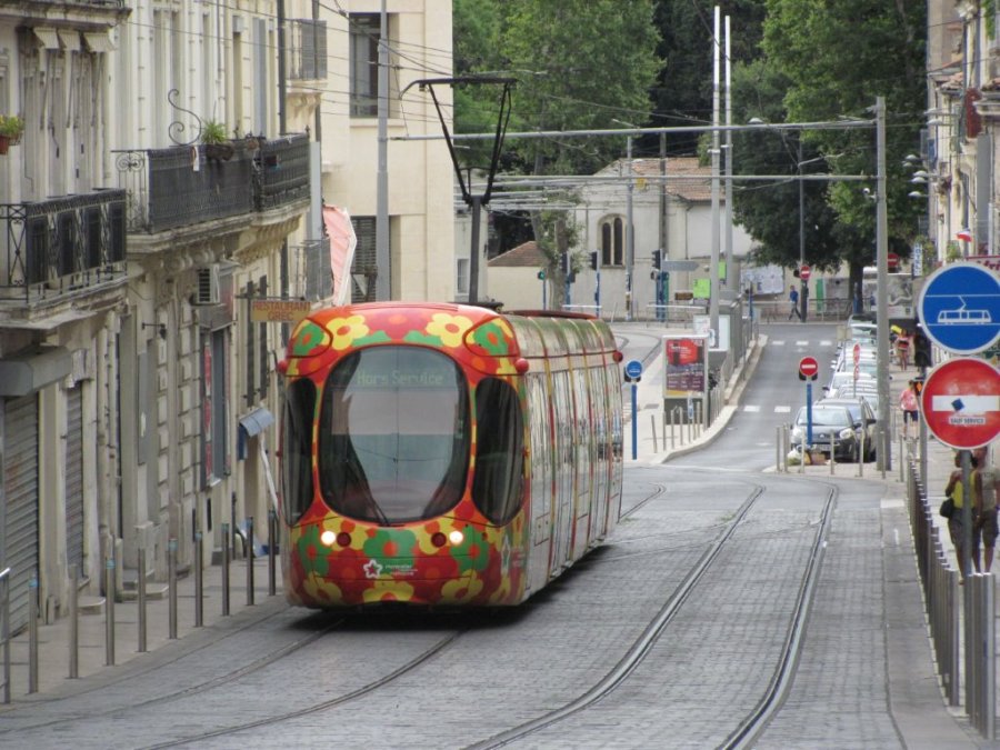 Du lundi 25 juillet au lundi 15 août 2016, les rames de la ligne 2 emprunteront leur itinéraire d’avant le samedi 7 avril 2012. La rame 2057 Citadis 302 Alstom est photographiée rue du Pont-de-Lattes, le jeudi 14 juillet 2016. Copyright : Edouard Paris