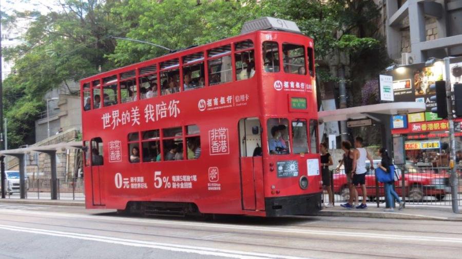 A Hong Kong, livrée China Merchants Bank pour la motrice 91, le jeudi 21 juillet 2016. Copyright : DS7