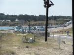 - Bouchon de véhicules automobiles au passage à niveau de l’isthme de Penthièvre, photographié depuis le train « Le Tire-Bouchon » Auray-Quiberon, le dimanche 14 août 2016 à 13h05. Copyright : Edouard Paris