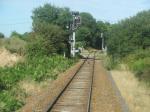 - Aperçu de la voie unique parcourue par le Tire-Bouchon à 60 km/h maximum entre la halte de Belz-Ploëmel et la bifurcation d’Auray, le dimanche 14 août 2016. Copyright : Edouard Paris