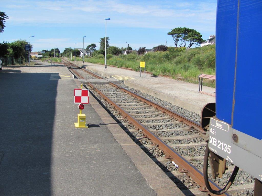 Le voyage de retour de la plage se fera à bord de l’autorail X 2135 du dépôt de Rennes, assurant le Tire-Bouchon de 17h31, avec deux remorques et un frère jumeau en queue, au départ de Quiberon, le dimanche 14 août 2016. Copyright : Edouard Paris