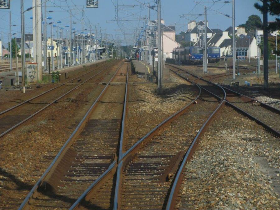 Le Tire-Bouchon en provenance de Quiberon arrive en gare d’Auray, son terminus, où il est aiguillé vers la voie 3, le dimanche 14 août 2016 à 18h22. Copyright : Edouard Paris