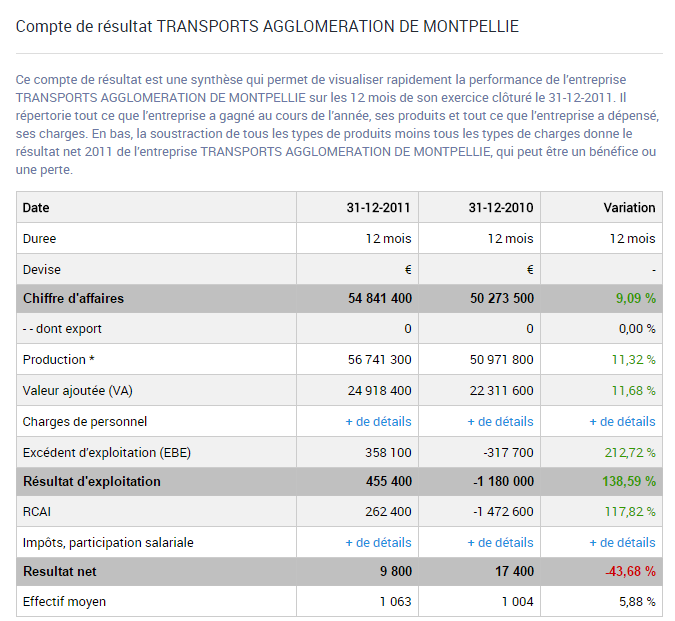 Comparatifs des comptes de résultat TaM 2011 et 2010